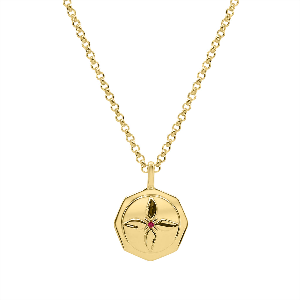 Inspired by the West Indian Jasmine flower that grows throughout the Caribbean, the IXORA Pendant captures it's beauty and vivid red color with a Ruby center stone.