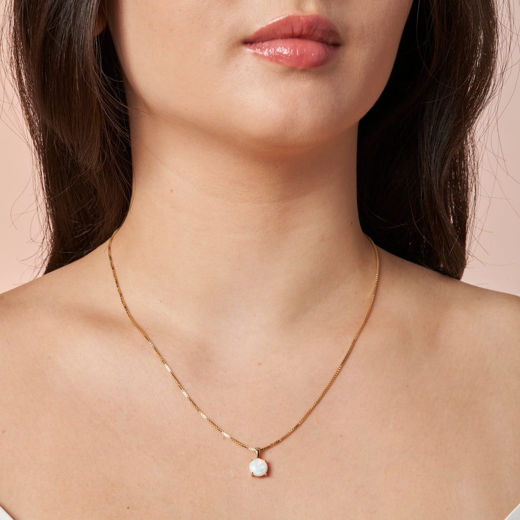 Opal, the birthstone for the month of October, captures the hues of the ocean in a fiery play of color. Opal symbolizes hope and purity.