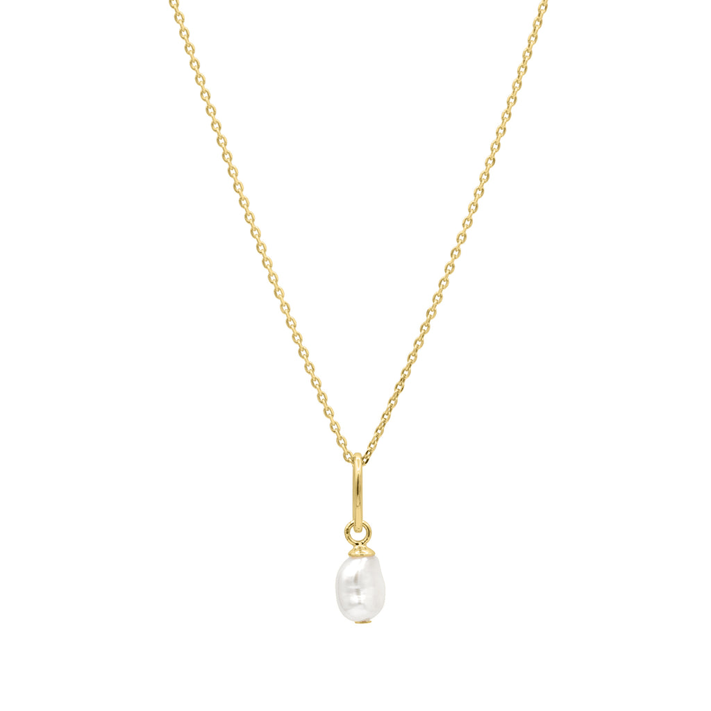 A delicate fresh water pearl suspended on a modern bail, this pearl drop pendant is unique as you.